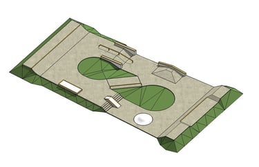 Después del taller de diseño, nuestra oficina de planificación crea un dibujo ejecutable basado en el concepto de diseño y las sugerencias. Para ello, las distancias, alturas y radios del futuro parque de patinaje se establecen en una proporción óptima para lograr las proporciones adecuadas según las demandas del sector.